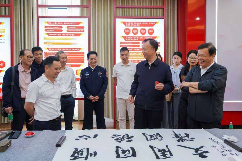 观展环节,嘉宾与民警职工驻足品鉴,在笔墨气韵中感悟思想力量。一位青年民警在“江山就是人民,人民就是江山”作品前动情地说:“守护国门就是守护人民,这份责任重若千钧。”一位老党员民警在“功成不必在我、功成必定有我”作品前久久凝视:“树立和践行正确政绩观,就要甘于抓未成之事,这正是移民管理警察的初心与担当。”共建单位代表表示,在书法艺术中感悟两会精神、接受忠诚教育,既是一场高雅的艺术享受,更是一堂生动的思政大课。书法名家还现场即席挥毫,以笔会友、以墨传情,气氛热烈。