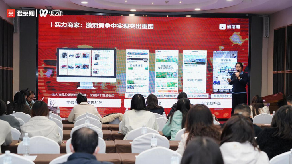 活动在充满期待的氛围中正式开启。现场首先围绕2026年AI商业趋势与实战案例展开分享,通过结合实际的行业数据与典型实例,为参会企业家解析了当前的市场变化与潜在机遇。随后,爱采购平台代表从专家观点、产品能力及客户实践等多重视角切入,系统地拆解了B2B商家在智能时代的增长路径,呈现了一套从认知到可落地的行动指南。
