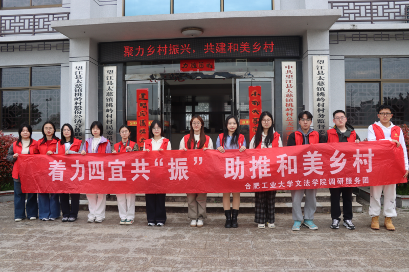 3月28日,在檀江林教授与尚长风副教授带领下,合肥工业大学文法学院调研服务团一行15人赶赴安徽省首批“和美乡村精品示范村”的望江县桃岭村,围绕农文旅深度融合和乡村全面振兴主题,开展深度调研服务。在实地走访互动与研讨交流中,探寻桃岭村如何构架“党建为核、文化为翼、治理为基、融合为路”的新时代发展模式,助推全国文明村建设。