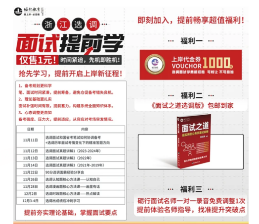 面试考察的远不止于你的表达能力,更是对你是否真正理解、认同公务员角色和政府工作逻辑的全面考核。砺行在备考全程融入公务员气质的系统培养:从语言表达的规范性到思维方式的政策性,从处理问题的整体性思维到展现价值观的真实性,全方位塑造学员的公务员气质与风范。这五大方法思维,是砺行22年培训经验凝练而成的核心方法论,已经被一届届浙江省考高分学员反复验证其有效性。如果你希望系统掌握这套经过实战检验的备考方法论,欢迎现在联系胡老师,为你量身定制专属备考提升方案。