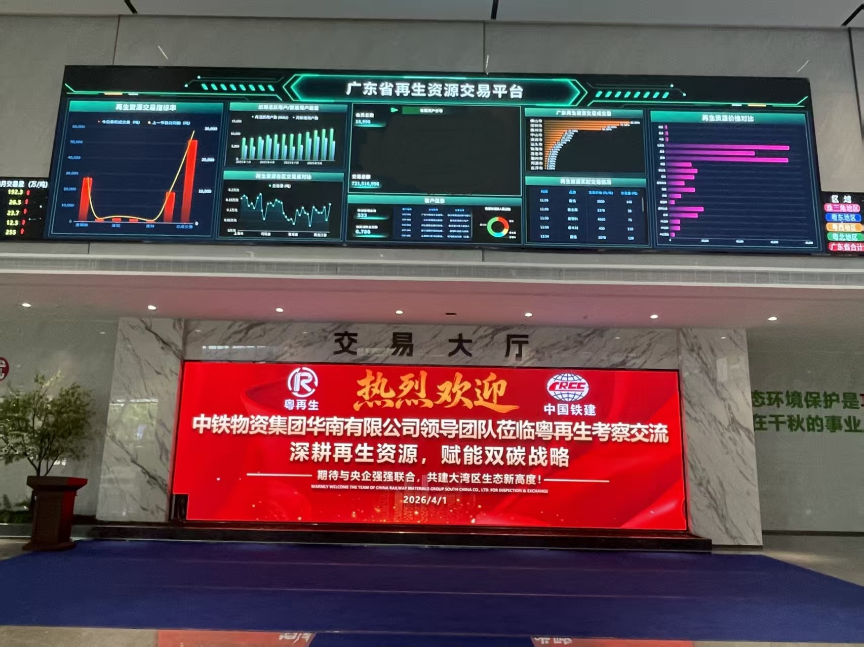 双方一致认为,当前国家大力发展循环经济、推进数字经济与实体经济深度融合、加快构建废弃物循环利用体系,国央企工地废旧物资(尤其是废钢、废铁等大宗品类)资源化利用空间巨大、合规要求高、市场潜力广阔。依托中铁物资集团华南有限公司在工程场景、物资资源、央企合规管理、产业协同的优势,叠加粤再生在平台技术、交易运营、碳服务、区域资源整合的能力,双方平台深度融合恰逢其时、势在必行。