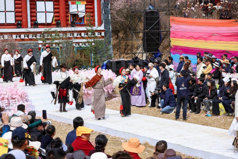 开幕式后的文艺展演同样精彩纷呈。整场演出以“杏花归处是吾乡”为主题,分为“草原牧歌”“沃野耕乡”“幸福花开”三个篇章,由道孚县各界群众代表联袂出演,时装秀、本土服饰情景秀与特色歌舞交织上演,生动呈现出当地独有的人文风情与精神风貌。