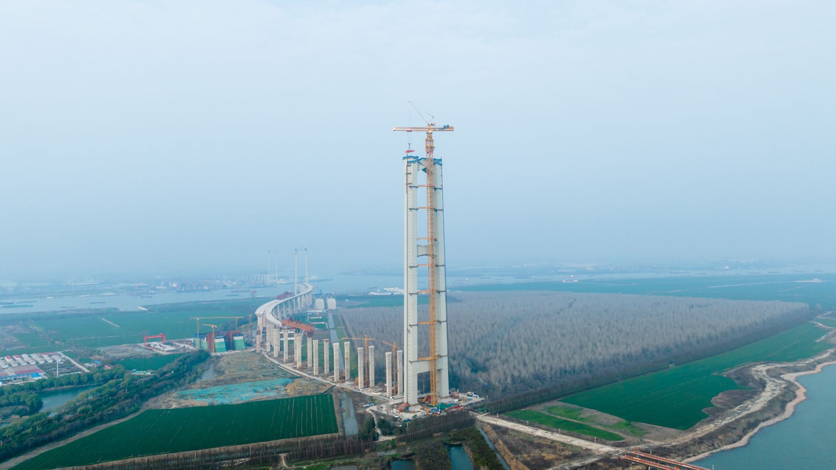 据悉,张靖皋长江大桥是国家“十四五”期间重点推动建设的过江通道项目,直接连通G40沪陕、G4221沪武两条国家高速路网大通道,贯通苏州张家港市、泰州靖江市和南通如皋市,全长29.85公里。其中,2300米的主跨跨度不仅刷新了悬索桥的世界纪录,也实现了我国桥梁史上2000米级跨越的里程碑式突破。南航道桥为主跨2300米的双主塔双跨吊钢箱梁悬索桥,两座主塔高度均为350米,是目前世界最高的悬索桥索塔。主索鞍作为主缆传递巨大拉力的“承重基石”,其安装精度直接关系到主缆线形和桥梁整体受力安全,为大桥上部结构施工奠定了坚实基础。