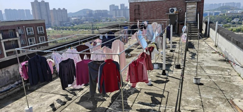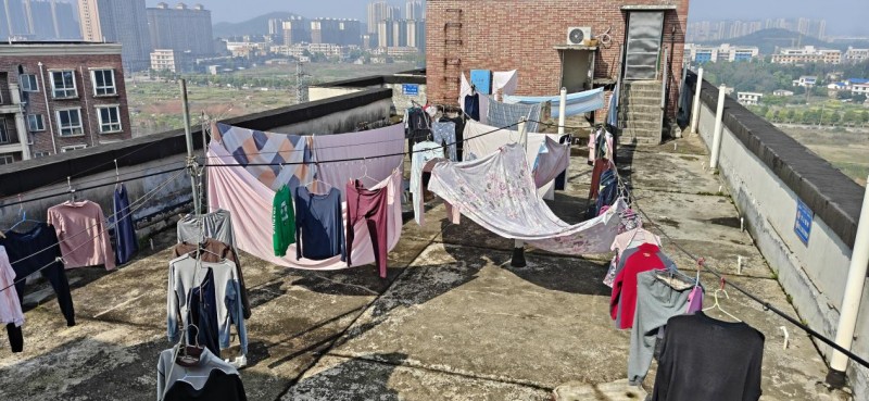 2026年4月1日,一个由不锈钢管搭建的长13米、宽3米的晾衣棚架在长沙市望城区黄都港社区普瑞斯堡小区B1栋楼顶落成。趁着大好晴天,业主们带着幸福满满的微笑晒出自己的衣服被子。