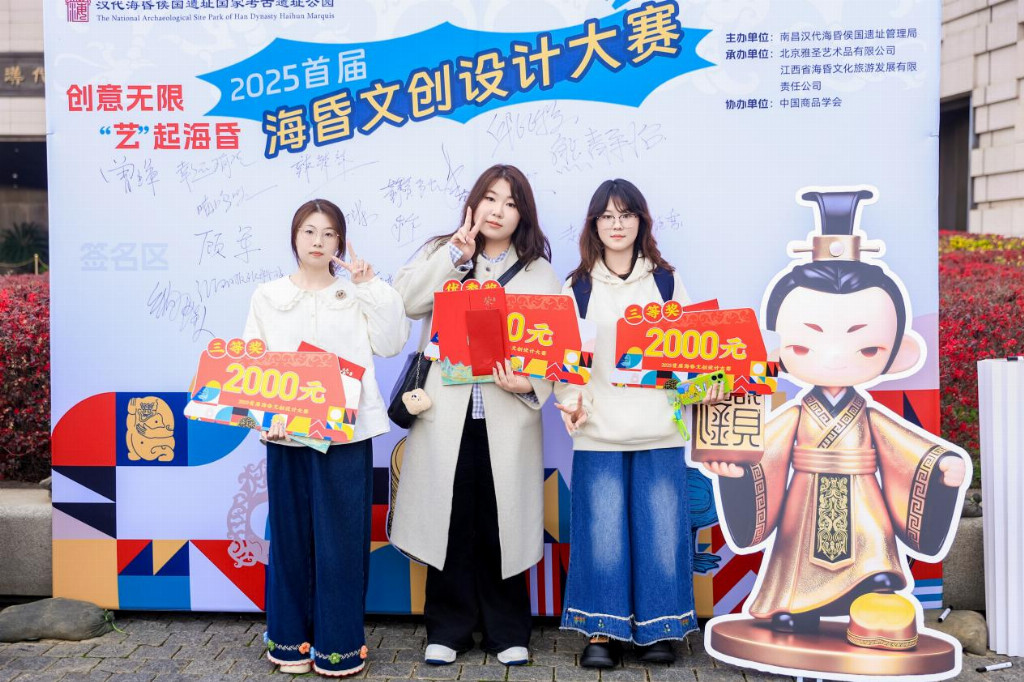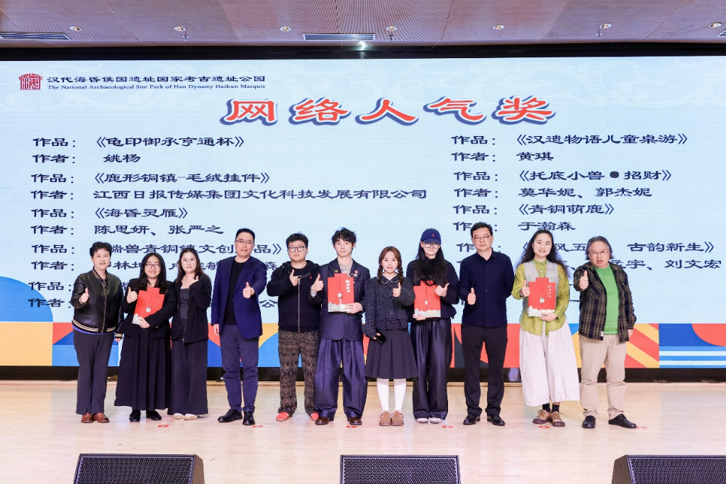 据了解,自2025年9月正式启动以来,面向全国高校、设计机构及独立创作者广发邀约,短短三个月便收获了来自全国各地的418 件创意作品。作品兼具历史底蕴与当代审美,充分展现了创作者对海昏文化的多元理解与创新诠释。经过初评、网络投票、专家终评多轮评选,209件作品脱颖而出进入复赛,最终 36 件作品摘得网络人气奖、优秀奖、三等奖、二等奖等多个奖项,在众多佳作中脱颖而出。