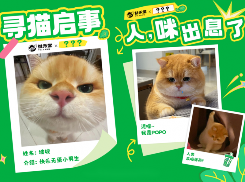 这次,益禾堂与全网粉丝近百万的表情包顶流“坡坡popo”联名,用萌趣化、社交化的语言,与年轻人玩在一起。双方“上头”属性更是高度契合:坡坡popo傲娇的表情自带“上头”魔力,而益禾堂薄荷产品的清爽口感同样令人欲罢不能。品牌将“人喝薄荷会上头”的体验,与“猫吸猫薄荷”的萌趣心智绑定,精准引起大家的情感共鸣。