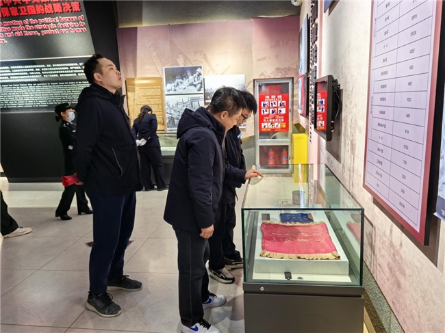 在庄严肃穆的烈士纪念碑前,全体人员肃立驻足,怀着无比崇敬的心情,追思革命先烈的英勇事迹,感悟他们为国家和人民舍生取义的崇高精神。随后,大家走进陵园展馆,认真观看历史展板、珍贵史料与实物展品,沉浸式回溯抗美援朝战争中志愿军将士浴血奋战、保家卫国的峥嵘岁月,深刻体悟伟大抗美援朝精神的时代内涵。