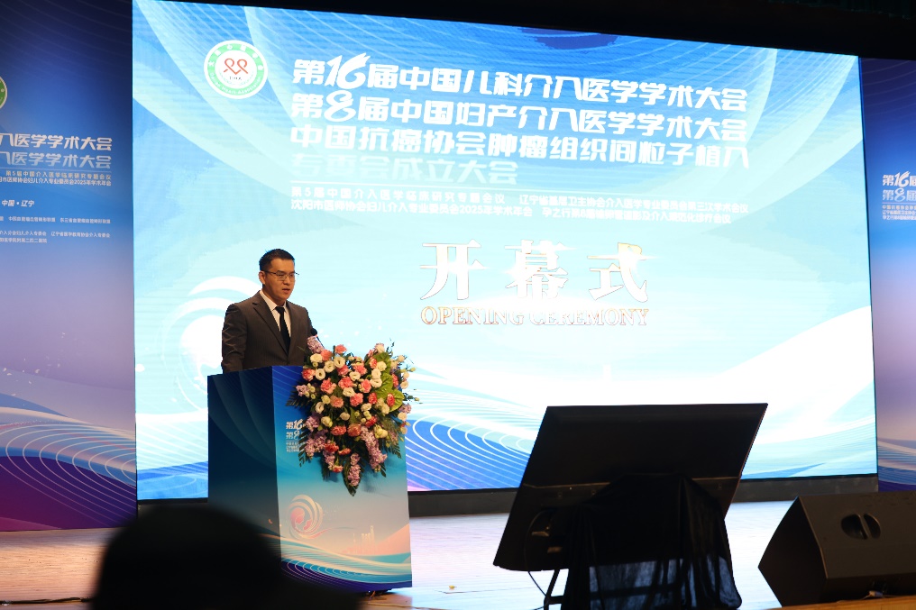 牛猛教授作为大会主席致辞中国儿科介入医学学术大会、中国妇产介入医学学术大会、中国抗癌协会肿瘤组织间粒子植入专委会成立大会开幕式