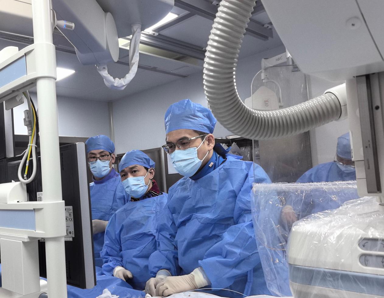 牛猛教授带领团队进行介入手术