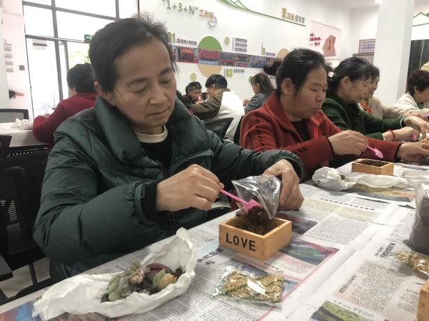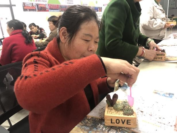 活动现场,工作人员先讲解清明节传统习俗与文化内涵,倡导绿色环保的文明祭扫方式,引导居民树立厚养薄葬、绿色环保的理念。随后的DIY环节,工作人员现场演示多肉微景观铺土、栽苗、铺面、装饰的制作步骤及养护技巧,老人们兴致盎然动手创作,志愿者全程一对一贴心协助行动不便的老人。大家在创作中交流心得、畅谈趣事,将思念与期许融入作品,完成后相互欣赏展示,工作人员为大家拍照留念,定格温馨瞬间。