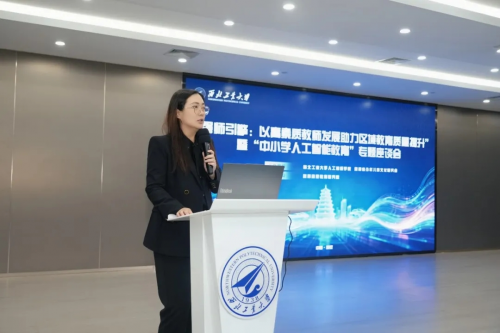 西北工业大学人工智能学院沈钧戈副教授表示,高校正积极将前沿AI技术转化为服务基础教育的实际能力,推动教师数字素养提升与教学模式创新。西北工业大学人工智能学院、星舟AI创始人王亦晨博士及专业团队现场展示了中小学人工智能教育应用成果,剖析学校推进AI教育“缺人、缺课、缺平台”的痛点,详解西北工大研发的星舟AI青少年人工智能教育体系解决方案,涵盖AIGC辅助课堂教学、智能资源开发、学生计算思维培养等场景,分享了从技术落地到课堂实践的可行方案,为人工智能融入基础教育提供了“看得见、用得上”的陕西样本。