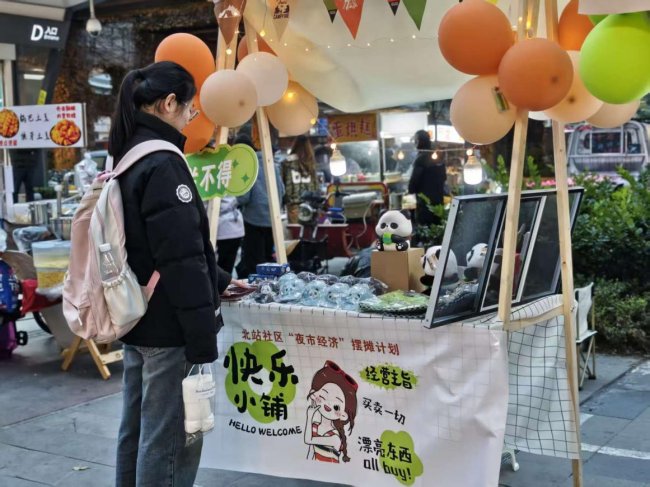 活动现场设置创业实战区、互动体验区两大特色区域,各有亮点。创业实战区内,青年摊主们凭借自身所学技能与创业热情,全程参与选品、销售及成本核算,社区为摊位统一配置了海报与彩灯,营造出热闹的夜市氛围。摊主们各展所长,吸引了不少市民驻足咨询、购买,在实战中积累了宝贵的经营经验。