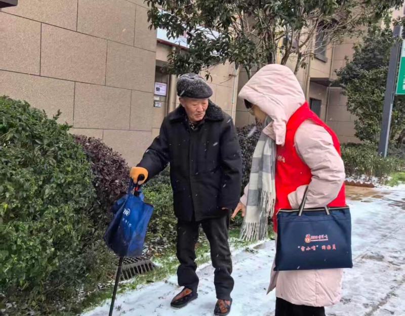 “雷小哨”网格员曾英在雨雪天气护送龙大爷回家