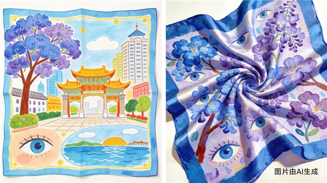 用明亮的眼睛,收藏一整个紫色春城。期待小艺术家们拿起画笔,记录下眼中最美的蓝花楹,让昆明的浪漫通过丝巾传递到更远的地方。