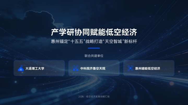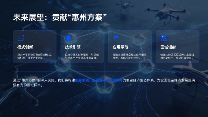 紧扣国家“十五五”低空经济发展战略,广东省、惠州市抢抓产业发展机遇,先后出台专项扶持政策,以“天空智城”建设为抓手,全速推进低空经济全链条产业布局,主动融入粤港澳大湾区世界级低空经济产业带,以创新产业赋能区域经济高质量转型。