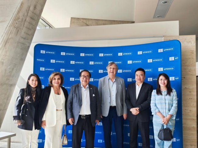 在法国巴黎,代表团到访联合国教科文组织总部,与前副总干事汉斯·道维勒及玛丽女士会晤,并在新管理团队陪同下考察总部核心区域,深入了解文化遗产保护、文明对话、国际文化合作等领域的最新实践与规划部署。双方围绕东西方文明深度互鉴、全球文化遗产协同保护、跨国文明交流项目落地等议题座谈,达成多项合作共识,为后续联合推动文明对话项目行稳致远。