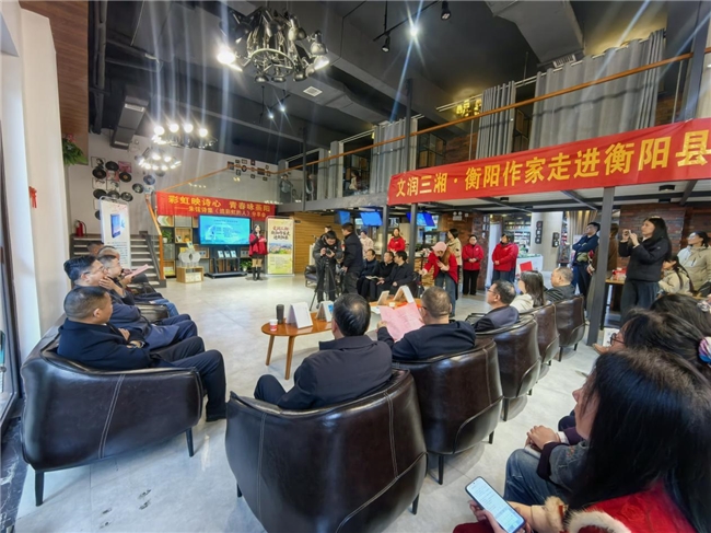 衡阳县委副书记、宣传部部长刘洋引用朱弦诗作中的句子——“总有一条道路垂青于迷路者,就像一道彩虹的安慰给予追梦人”寄语全县文艺工作者:要做追彩虹的人,执着追寻理想之光、记录时代之变、传递人心之美。她希望作家们扎根人民,讲好蒸阳故事,用文字擦亮王船山、夏明翰、琼瑶等文化品牌。