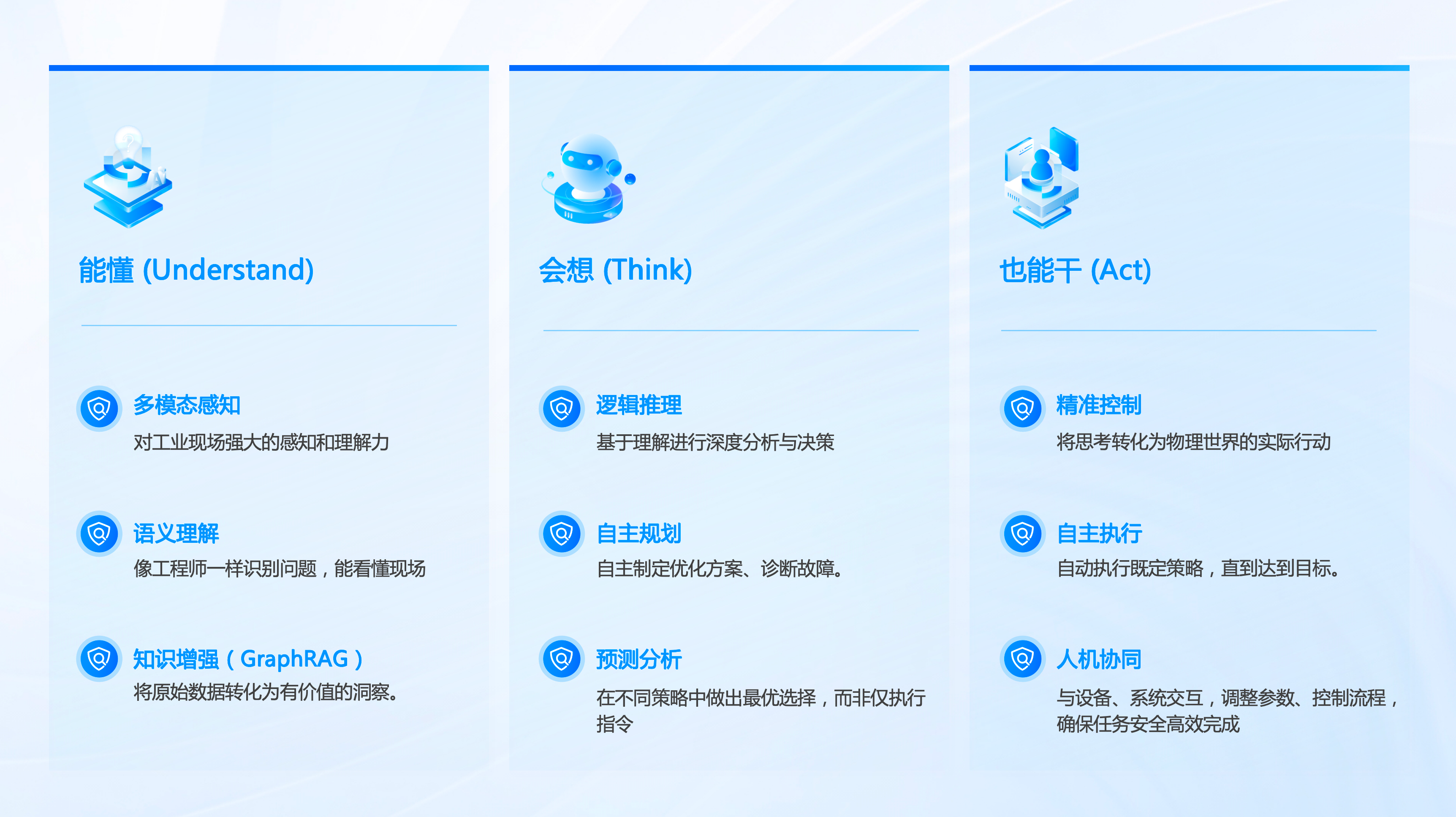作为国产工业AI领军企业,远舢智能深耕工业智造多年,始终坚持“从工业现场出发、为工业现场而生”的产品理念。此次发布的INOS Claw智立方,并非通用智能体的简单迁移,而是基于远舢OS工业操作系统深度定制的专业级智能体,具备“能懂、会想、能干”三大核心能力。该产品基于多模态感知与知识增强来读懂现场,通过逻辑推理与自主规划优化决策,精准控制与自主执行直达设备,可真正实现AI决策对物理世界的可靠干预。