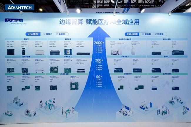 在医疗设备智能化升级过程中,算力不匹配与AI部署复杂,成为行业共性挑战。研华打造面向医疗全场景的边缘AI算力底座,通过x86与Arm双架构并行与及全梯度算力布局,覆盖 1+TOPS 至 2000+TOPS 全梯度算力区间,实现从便携低功耗设备到高端医疗装备的全场景适配,为各类医疗设备提供精准匹配的算力支撑。