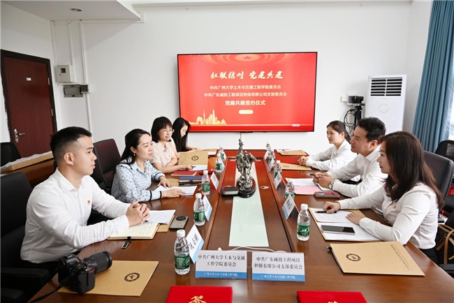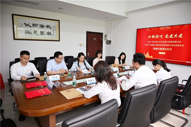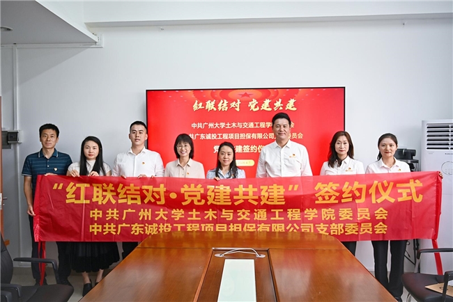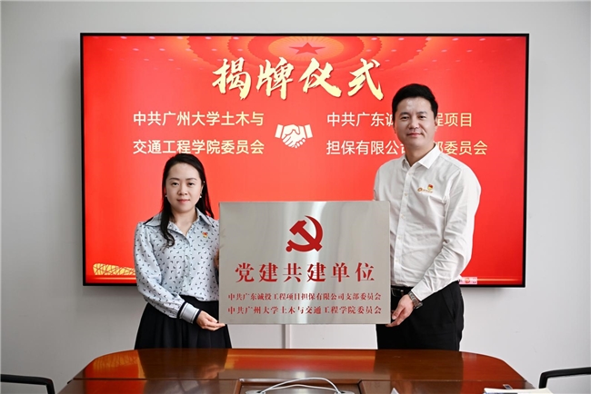 为积极探索基层党建创新路径,推动校企党建资源置换、优势互补,4月7日下午,中共广东诚投工程项目担保有限公司支部委员会与中共广州大学土木与交通工程学院委员会在广州大学行政东楼举行“红联结对 党建共建”签约仪式暨党建共建单位揭牌仪式。广州大学土木与交通工程学院党委书记罗迪、副院长赵美花、党委副书记吴海威、教务办主任刘珠丽,广东诚投工程项目担保有限公司党支部书记兼董事长王合辉、总经理林尉芬及部分党员代表等出席活动。活动由广州大学土木与交通工程学院副院长赵美花主持。