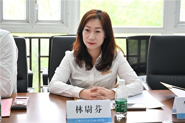 广州大学土木与交通工程学院副院长赵美花首先代表学院对广东诚投担保一行的到来表示热烈欢迎。她系统阐述了学院的发展历程、党建成果与学科实力,重点介绍了学院在结构抗震、智能建造等领域的技术优势及重大工程应用成果。她强调,双方要以党建引领推动校企协同,围绕“党建引领+产学研融合+行业赋能”构建人才培养、科研创新与政策服务一体化的新范式。期待通过此次共建,在组织建设、人才培养、技术攻关等方面开展务实合作。