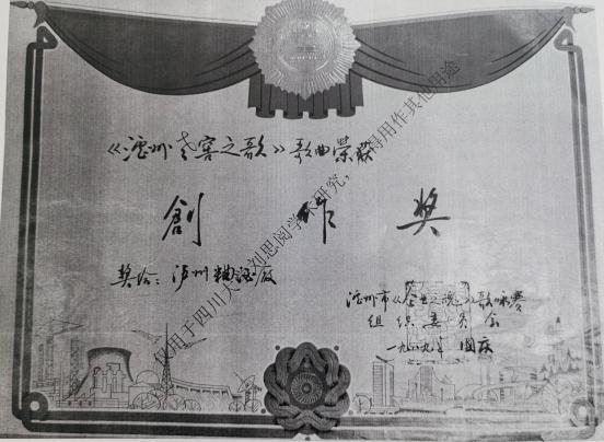 1989年《泸州老窖之歌》获泸州市企业歌咏赛的“创作奖”