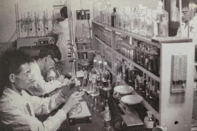 二十世纪七十年代科研人员在泸州老窖化验室用气相色谱仪分析白酒
