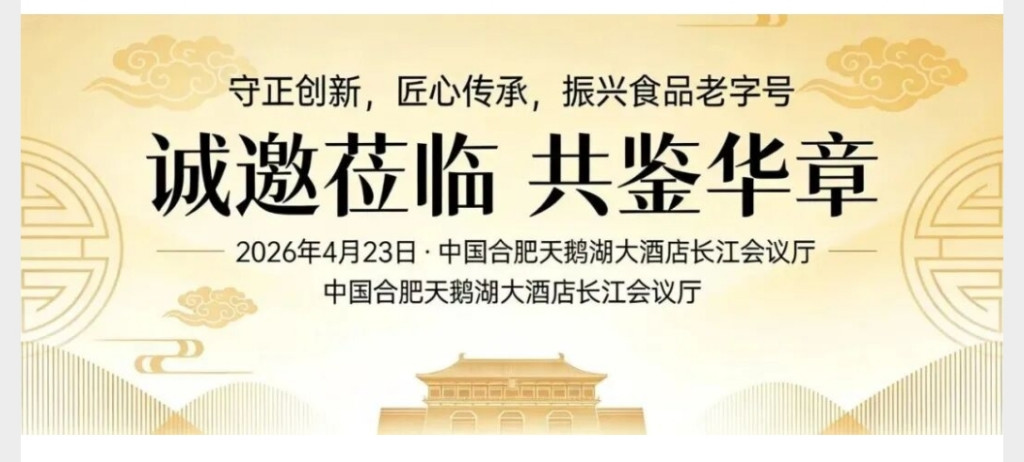 为深入落实国家老字号振兴发展战略,搭建食品老字号行业协同发展、品牌赋能升级的专业服务平台,中国食品药品企业质量安全促进会食品老字号工作委员会成立大会,将于2026年4月23日09:00在安徽合肥天鹅湖大酒店长江厅隆重举办。