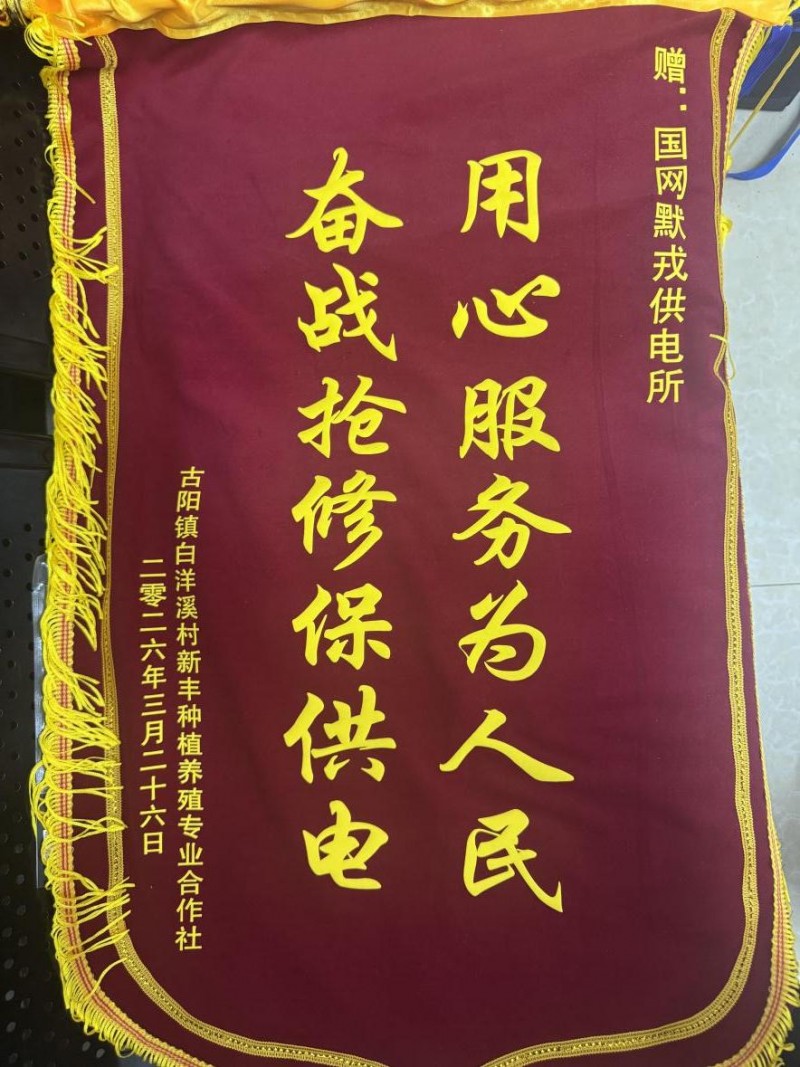 3月27日,合作社负责人将一面印有“奋战抢修保供电 用心服务为人民”的锦旗专程送到国网古丈县供电公司默戎供电所。“从半夜报修到恢复照明,再到量身改造线路,一点没耽误我们生产!这服务,没得说!”他握着工作人员的手连连道谢。