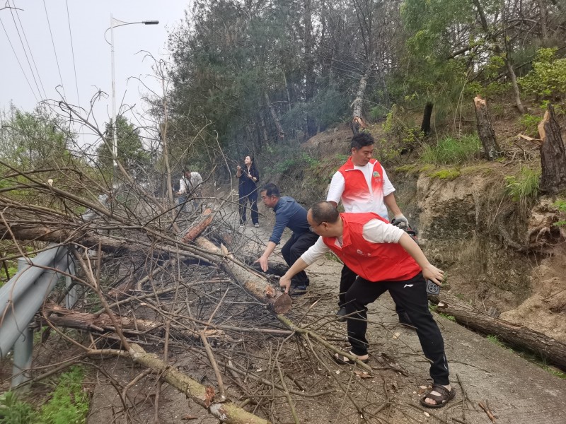 风雨无情人有情,党群齐心力量大。看到党员干部汗流浃背、奋不顾身的场景,附近村民深受感染,纷纷自发加入清障队伍。有人取来柴刀绳索帮忙拖拽,有人端来茶水为队员解渴。油锯声、吆喝声、鼓劲声交织在一起,汇成一曲党群同心、共克时艰的动人乐章。