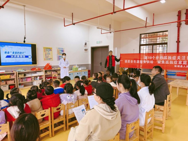 值2026年第19个“世界孤独症日”之际,一场聚焦儿童心理行为健康的联合义诊科普活动在保靖县阳朝幼儿园温暖开展。本次活动由保靖县人民医院儿童保健康复中心牵头,联合湘西州人民医院专家及阳朝卫生院共同实施,是贯彻落实国家关于加强儿童医疗卫生服务与心理健康体系建设要求,推动优质资源下沉基层的又一务实举措。活动累计为28名在园儿童提供了专业健康筛查与科普教育。