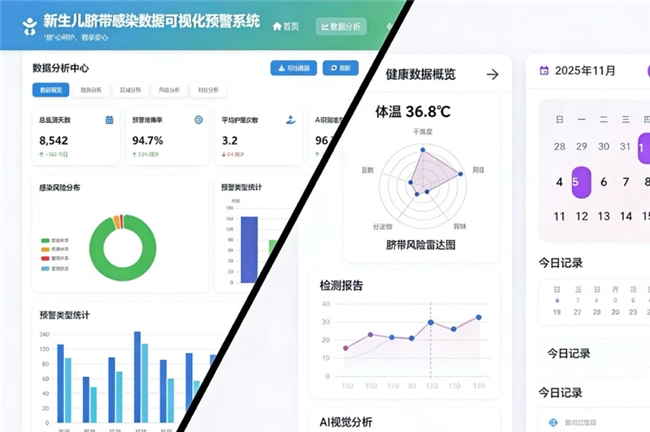 新生儿脐带护理周期短、感染风险高,是家庭育儿的核心焦虑点。传统产品仅能基础防护,家长靠肉眼判断易出现误判、漏判,引发过度就医或延误干预;现有智能产品功能碎片化、数据晦涩,无法形成护理闭环,难以满足“少生优养”的育儿需求。
