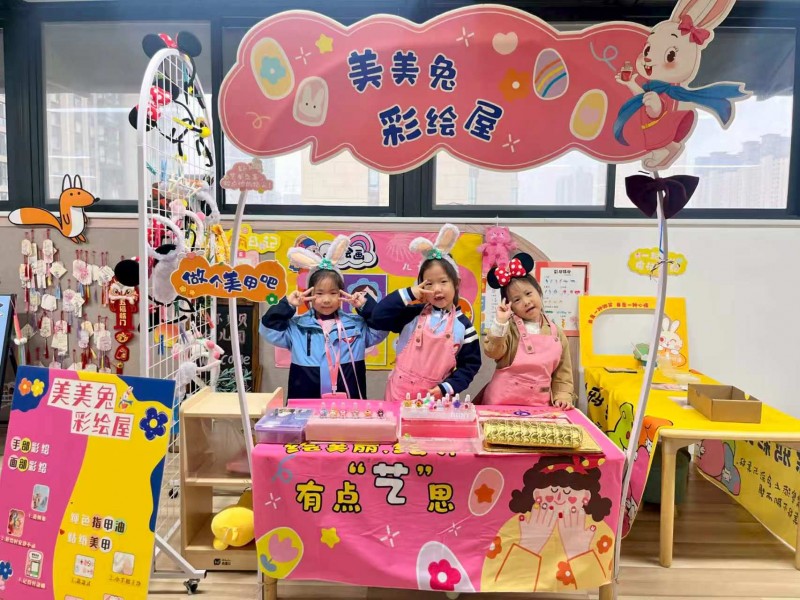 在“快乐集市”现场,孩子们提前制定购物计划,带着自己积累的“财富”自主挑选商品、与同伴商量、独立完成付款,真正实现了“当家做主”。集市开张前,小员工们各司其职:美甲师认真为“顾客”设计图案,摄影师则拿着相机为小伙伴们记录下精彩瞬间。孩子们在角色扮演中锻炼了动手能力、服务意识与沟通协作精神。