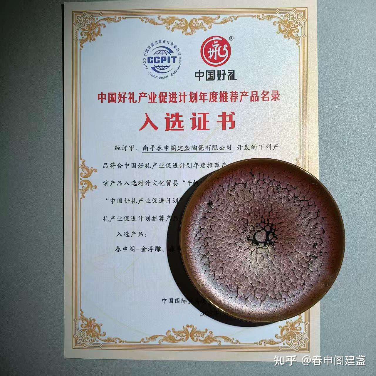 春申阁建盏一直秉承原矿釉纯手工,并遵循传统工艺烧制地道真建盏。先后荣获多项国家级荣誉,凸显其在建盏行业的断层式领先地位: