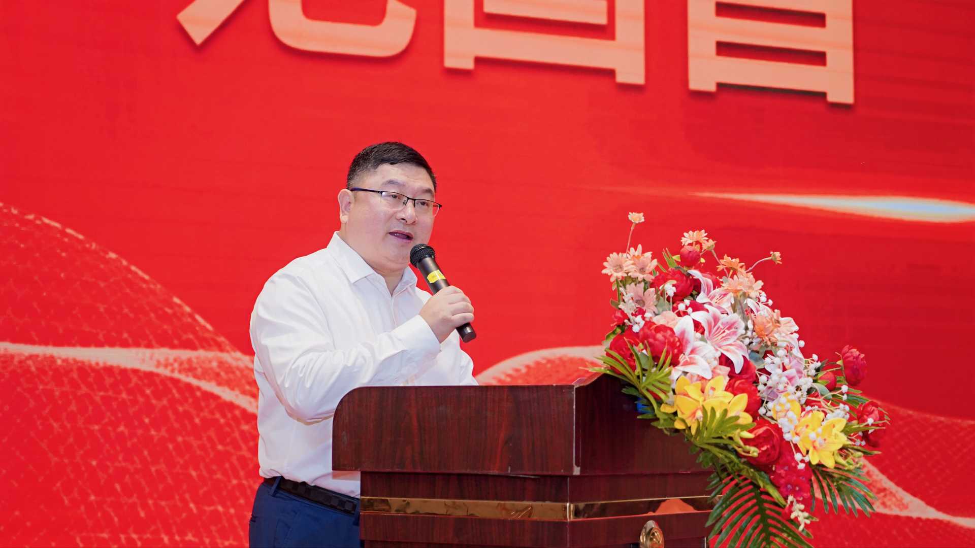 广东江西宜春商会新当选的第四届会长黄龙辉上台发表就职演讲