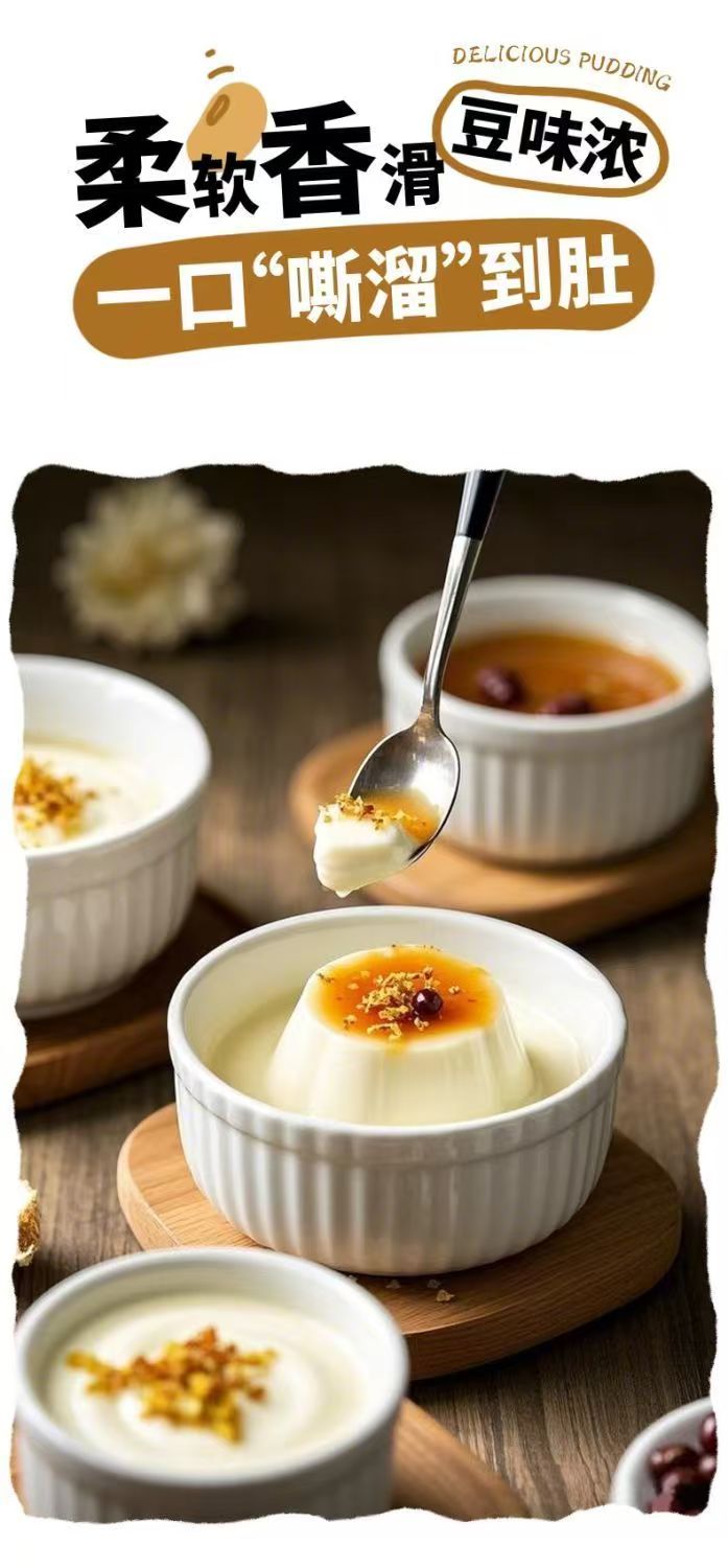对批量采购而言,品质稳定是基础,成本可控是核心。核心产品双六豆花布丁粉,采用商用级配方,经严格品控,每批次口感、色泽高度一致,彻底解决传统豆花类产品豆腥味重、出水、分层等问题,批量采购无需担心品质波动,保障门店标准化出品,避免损耗、间接降本。同时,产品高弹嫩滑、豆香浓郁,用户接受度高,让采购原料转化为盈利优势。