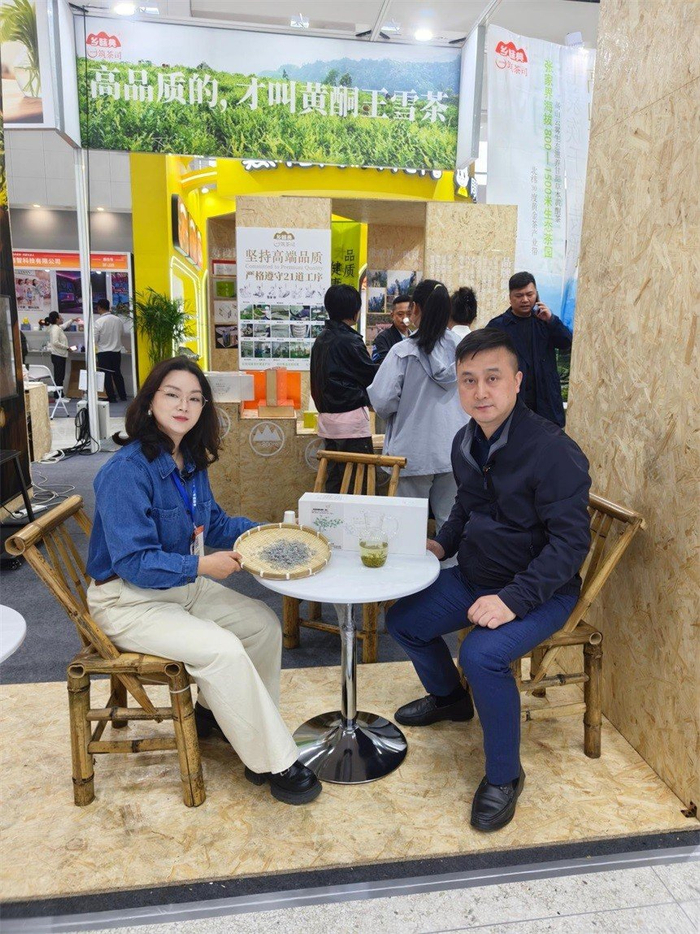 本次展会,湖南家乡味道农业开发有限公司旗下乡味典品牌,携核心子品牌筑茶司重磅亮相,以黄酮王雪茶、高山莓茶两大拳头产品系列,及张家界蜂蜜、葛根粉、杜仲雄花等特色助农产品组成的精品矩阵,凭借卓越品质与匠心设计,成为本届展会焦点,现场签约合作意向不断,圆满收官。莓茶,又名小叶种藤茶,生长于武陵山脉,主要产自张家界,因表面有一层天然“白霜”而被称为“霉茶”,后改称莓茶。张家界莓茶被誉为“黄酮之王”,含有丰富的黄酮类化合物及多种人体必需的氨基酸、微量元素,具有清咽利嗓、降脂降压等显著保健功效。黄酮王雪茶更是在传统工艺基础上精心研制,备受观众青睐。