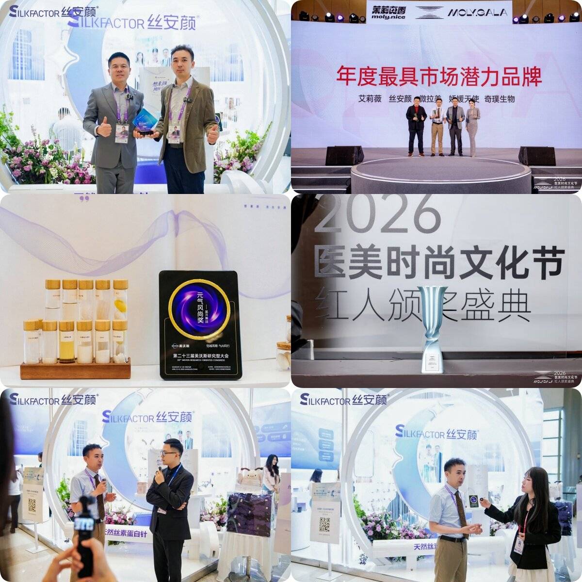 凭借在再生医美领域的技术深耕与品牌影响力,星月生物荣获第二十三届美沃斯研究型大会【元气风尚奖】。在同期举办的MOLY·GALA医美时尚文化节上,丝安颜品牌更斩获【年度最具市场潜力品牌】。双项荣誉不仅是对星月生物“科研+产业”双轮驱动模式的认可,也印证了以丝素蛋白为代表的中国原创材料正走向行业舞台中央。