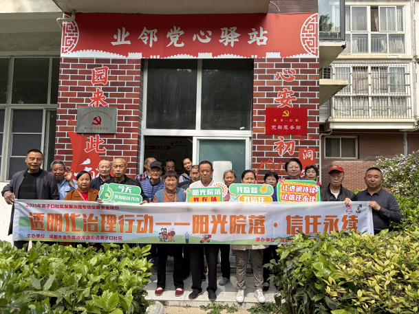 2026年4月8日下午,洞子口社区第一园小区内气氛庄重而热烈,“透明化治理行动——阳光院落·信任永续”年度总结发布活动顺利举行。本次活动由沙河源街道洞子口社区主办,成都市金牛区众心益社会工作服务中心承办,旨在系统性展示“洞见未来·信任构建项目”一年来的治理成果,并正式确立院落监督小组常态化运行机制,标志着院落从“阶段性行动”迈向“永久性机制”的信任治理新阶段。