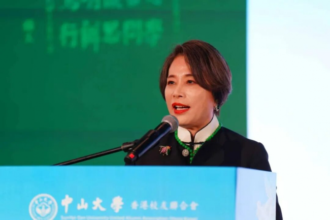 中山大学香港校友联合会会长杨长缨在致辞中,代表联合会对出席活动的各位嘉宾、校友表示热烈欢迎。她回顾了过去一年香港校友联合会在搭建交流平台、开展学术文体活动、参与社会公益等方面的工作,并提及校友驰援大埔火灾筹得善款近300万港币,彰显中大人家国情怀与社会担当。未来,香港校友联合会将聚焦校友企业出海,成立企业俱乐部、举办出海沙龙、组建专家智库,持续服务校友、服务母校、服务香港,并表示新一届理事会将承前启后、凝心聚力,共促高质量发展。