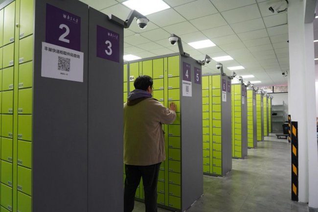作为南京大学的主校区,仙林校区师生规模庞大,日常快递吞吐量不容小觑。以往,堆积如山的包裹和满墙的货架是不少高校快递站的常态。此次合作中,丰巢在校园内投放了数十台智能柜机,一部分直接嵌入顺丰快递服务中心内,另一部分则分散布局于中心外的公共区域。通过24小时自助的智能柜,包裹丢失或错拿的概率在系统层面上得到了控制,对于习惯了下晚自习或晨跑后顺手取件的学生而言,24小时开架式的服务显然比定点下班的人工窗口更具弹性。