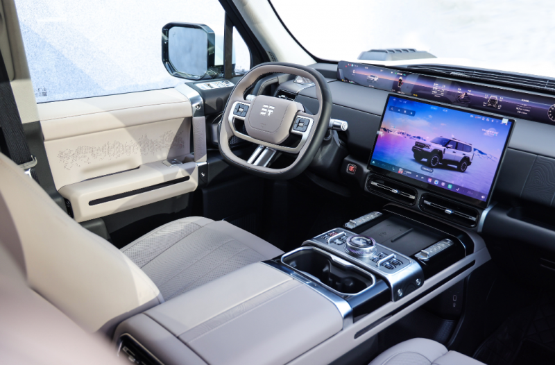 作为全领域豪华越野SUV,纵横G700顶火鸣镝版在硬核越野之外,兼顾豪华舒适与智能便捷,适配城市家用、长途自驾等多元场景。车型座舱搭载35.4英寸纵横天际屏、15.6英寸高清中控屏,配备8255车机芯片、5G车联网与四音区语控,支持CarPlay、HiCar手机互联,打造沉浸式智能交互体验。