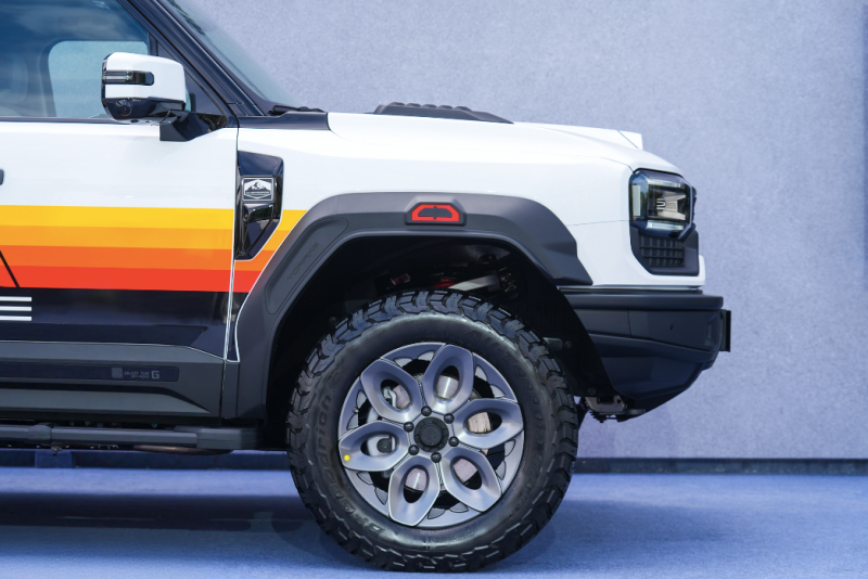 作为官方深度定制的越野车型,纵横G700顶火鸣镝版以顶火专属改装套件与原厂越野配置,打造无死角的全地形通过能力。外观层面搭载鸣镝前后杠、宽体轮眉、合金侧杠等定制防护组件,搭配20英寸航空铝锻造轮毂与295/60 R20百路驰AT胎,配合全尺寸背负式备胎,既能抵御越野路障冲击,又能在泥地、沙地、雪地等复杂路况保障抓地性能,满足长途穿越与极限越野的防护需求。