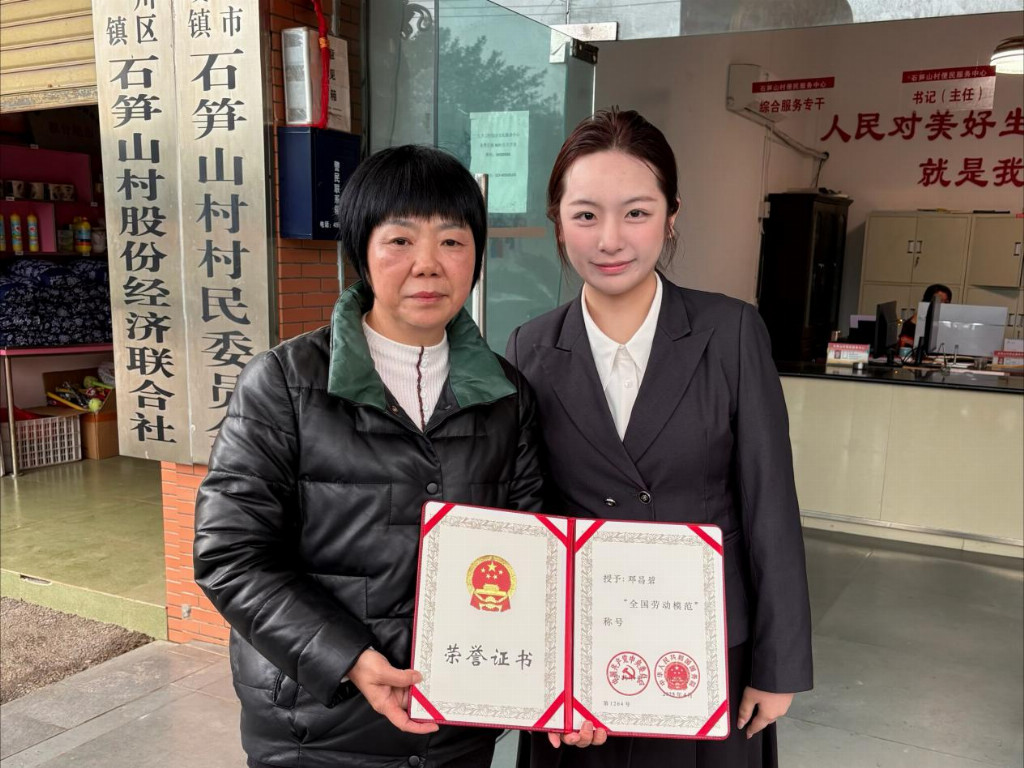 2025年,姜昕玙走进永川区何埂镇石笋山村,拜访全国劳模、村党委书记邓昌碧,同时参与村里的网格化排查工作。
