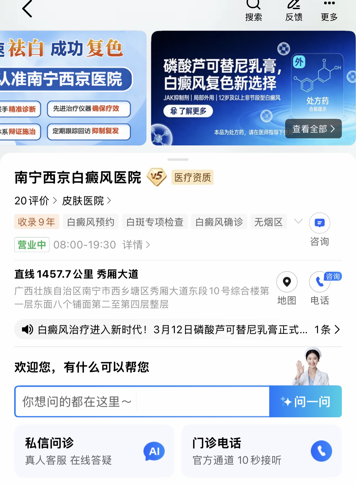 高德地图预约:搜索「南宁西京白癜风医院」购买对应挂号套餐,到院后凭核销码即可完成就诊核销。