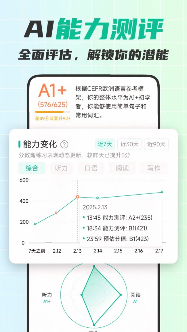 自研CEFR标准智能测评体系,练一遍效率提升85%