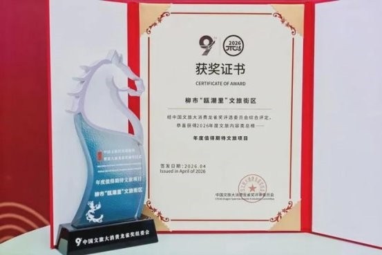 2026年4月8日至10日,2026中国文旅经济创新周暨第九届龙雀奖颁奖盛典在浙江举行。在这场汇聚全国文旅精英的行业盛会上,乐清市柳市镇“瓯潮里”文旅街区,经中国文旅大消费龙雀奖评选委员会综合评定,荣获2026年度文旅内容类总榜——年度值得期待文旅项目。