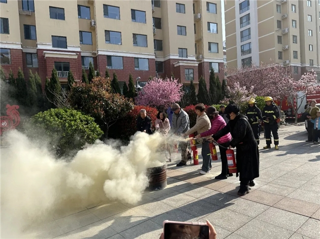 此外,消防救援人员还系统讲解了火灾应急逃生技巧和消防设施使用方法,重点演示了干粉灭火器“提、拔、握、压”四字操作口诀,详细说明灭火器的适用范围、检查方法及有效期,现场指导居民、物业工作人员亲手操作灭火器,进行模拟灭火练习,确保大家真正掌握灭火技能,做到“会操作、会使用、能应急”。同时,针对高层建筑逃生难点,讲解了火灾中浓烟的危害,提醒居民逃生时用湿毛巾捂住口鼻、弯腰低姿前行,切勿乘坐电梯、切勿贪恋财物,若楼道被浓烟封锁,应及时关闭房门、堵塞门缝,等待救援。