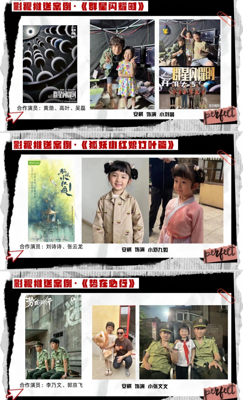 从《红尘四合》(合作王星越、徐若晗、昌隆)、《这一秒过火》(合作张凌赫、王楚然)、《骄阳似我》(合作宋威龙、赵今麦)、《流水迢迢》(合作任嘉伦、李兰迪)等头部S+项目,到《以她之韧》《长安的荔枝》《聊斋》《国色芳华》《势在必行》《玉兰花开花君再来》《玉簟秋》《群星闪耀时》《狐妖小红娘竹业篇》等口碑剧集,帜娱影视推送的小演员凭借灵动的表演、专业的素养,在剧中塑造了多个深入人心的角色,如《势在必行》中安淇饰演的小张文文、《玉兰花开花君再来》中小柚子饰演的小国清、《狐妖小红娘竹叶篇》中安淇饰演的小邓九如等,收获了剧组与观众的一致认可。