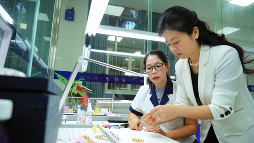 南珠饰品加工技艺凝结北部湾地域文明与匠人智慧,2024 年入选北海市非物质文化遗产名录。2002年,王丽拜师学艺,掌握南珠全流程核心工序,她认为非遗传承要适配市场,在她推动下,企业搭建培训体系平台,培育超 200 名学员,探索生产性保护路径,构建完整产业链。北海片区经理龚安翠统筹门店管理与市场运营,北海现有 11 家线下门店,2026 年五一前计划新增 2 家,大型综合门店集多种功能于一体。